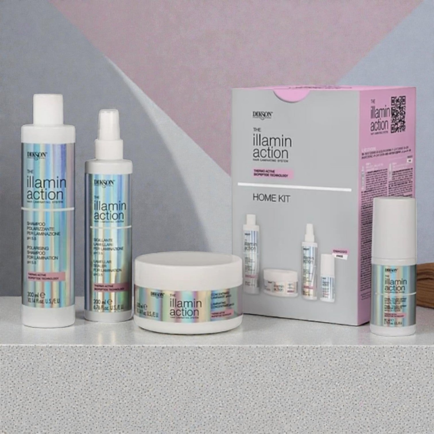 Rigenera e trasforma i tuoi capelli danneggiati con il Kit Laminazione Ricostruzione IllaminAction DIKSON. Trattamento professionale home kit che combina ristrutturazione intensiva e laminazione glossy in un unico sistema, per capelli riparati, rinforzati e straordinariamente lucidi con effetto mirror shine da salone.